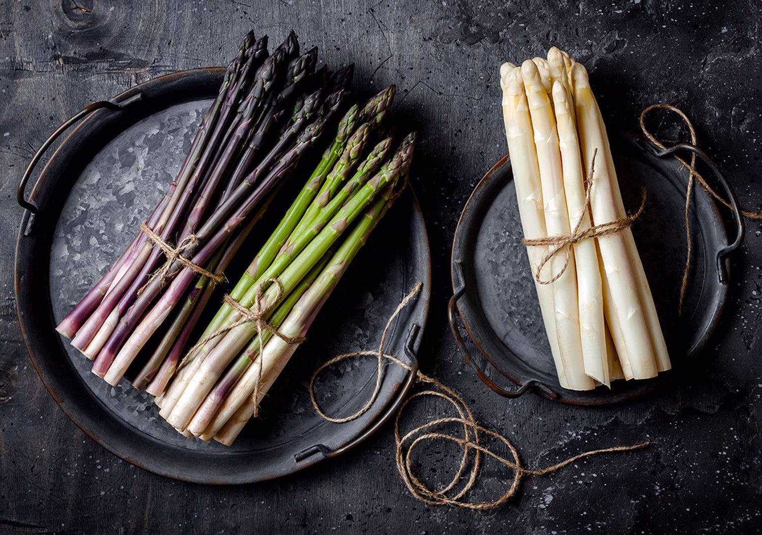 Asperges zijn er al heel lang en zowat overal ter wereld terug te vinden. Ze gaan terug tot de oude Egyptenaren en de Romeinen. Tegenwoordig worden ze nog steeds wereldwijd geteeld, van China tot Peru en overal daartussenin. Er is dus altijd wel een lokaal geproduceerde variant beschikbaar. Ze kunnen verschillen in kleur – wit, groen of paars – en hoewel ze vrij allround zijn, serveer je ze het best op hun sterkst, of dat nu grillen, stomen of bakken is.