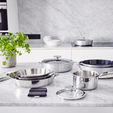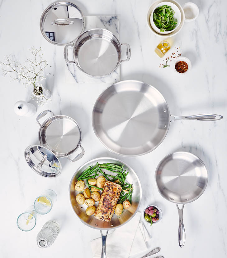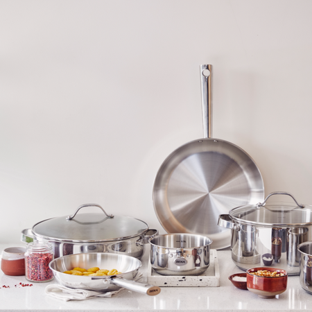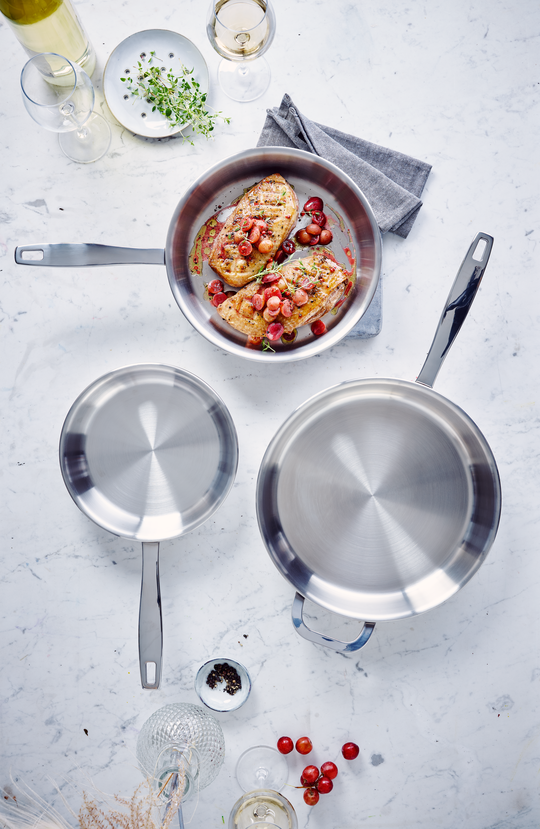Zonder aangekoekte ingredrediënten bakken, draait met RVS hapjespannen en koekenpannen om controle over temperatuur. Je wil de pan heet genoeg hebben om je ingrediënten snel dicht te schroeien – dat zorgt voor smaak, textuur en kleur.