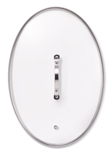 - Duurzaam glasdeksel met rand en handvat uit roestvrij staal.