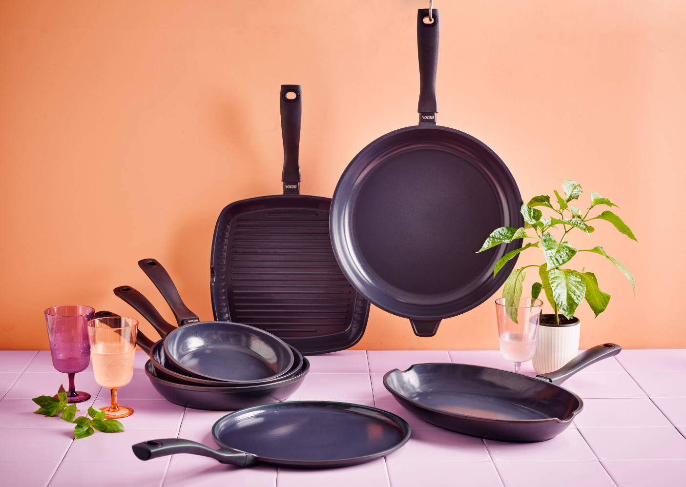 - De volledige collectie is voorzien van hittewerende ergonomische handgrepen waardoor je een stevige en comfortabele grip ervaart tijdens het gebruik.