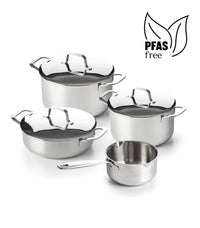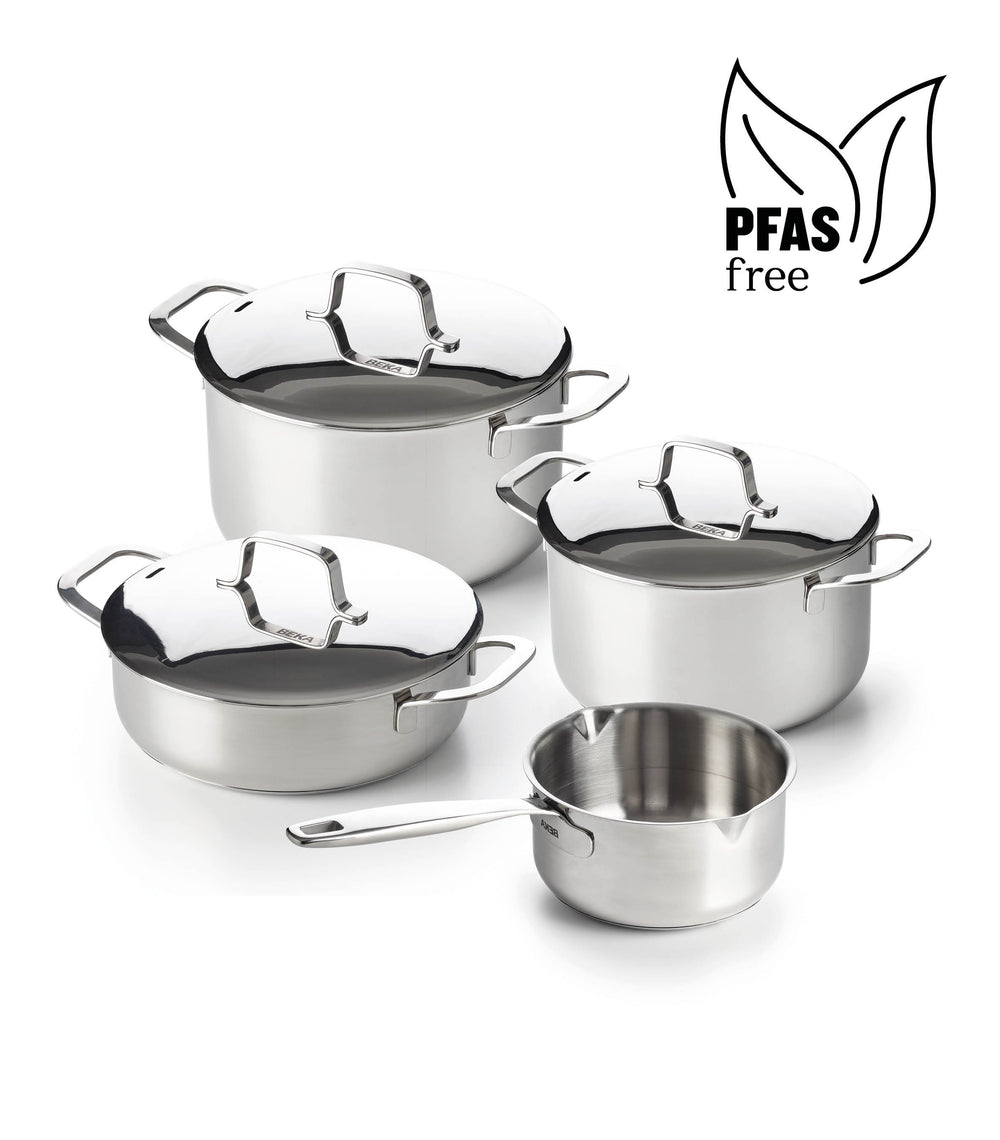 Deze pan heeft geen coating – enkel hoogwaardig roestvrij staal, natuurlijk PFAS-vrij en perfect voor wie bewust wil koken.