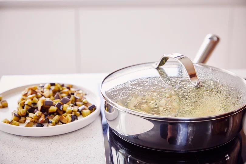 - Glasdeksel met stoomgaatje om overkoken en dansen van het deksel te voorkomen.