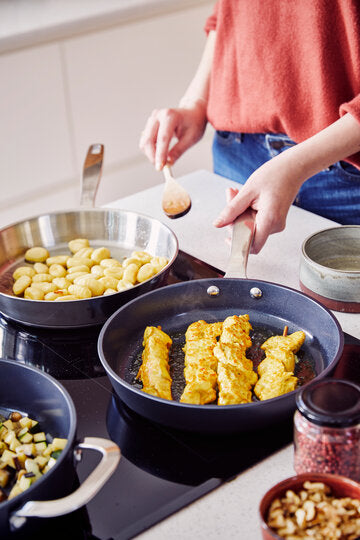 - Extra breiter Pfannenboden = +20 % mehr Nutzfläche dank der geraden Ecken.