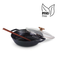 - Die Innen- und Außenseite ist mit drei Emailleschichten versehen und daher sofort einsatzbereit. Diese extra dicke Emailleschicht macht die Reinigung und Pflege dieses Wok zum Kinderspiel. Der Boden beugt sogar Kratzern auf Ihrer Herdplatte und Arbeitsplatte vor.