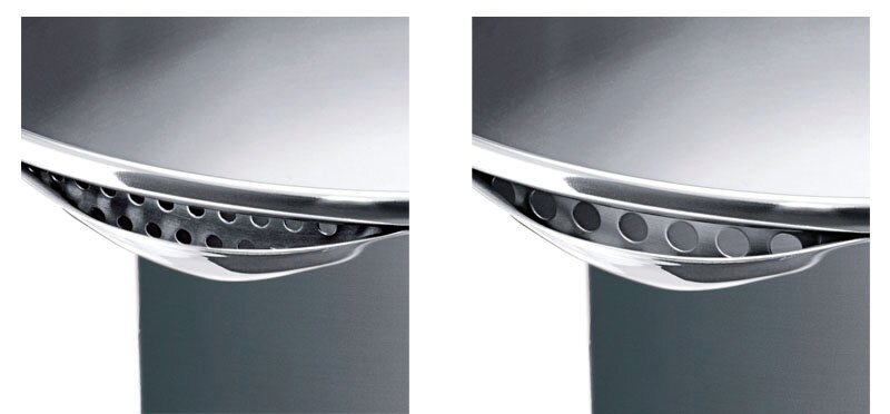 - Smart lid with integrated colander with 2 different sieve holes: the fine sieve holes are ideal for draining rice, peas, and pasta while the large sieve holes are suitable for draining large vegetables and potatoes.