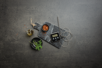 - Vérifiez la température exacte de votre cuisson (°C,°F) et réglez la minuterie jusqu'à 99 minutes et 59 secondes pour vos préparations - Ecran LCD rétroéclairé- Grce à sa face arrière aimantée, vous pouvez utiliser le thermoMEATER comme aimant sur votre frigo ou votre hotte - Fonctionne avec 1 pile AAA 1,5 V (non incluse)