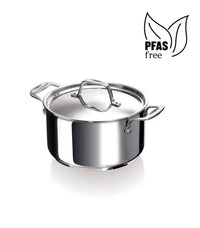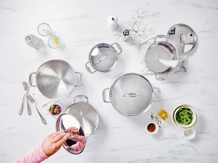 - 3-lagige sandwichbodem zorgt voor een gelijkmatige warmtegeleiding en optimaal warmtebehoud.