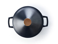 - Uitgerust met een prachtig gietijzeren deksel. De speciale vorm zorgt ervoor dat de condensatie terugkeert naar de bodem en in het voedsel komt. Resultaat: zeer malse en aromatische gerechten.