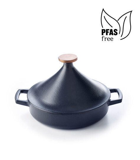 - Op de binnen- en buitenzijde zijn drie lagen email aangebracht. Het product is daardoor klaar voor onmiddellijk gebruik. De extradikke emailafwerking is krasbestendig. De tajine schoonmaken en onderhouden is zo een fluitje van een cent. De onderkant voorkomt zelfs krassen op uw kookplaat en keukenblad.
